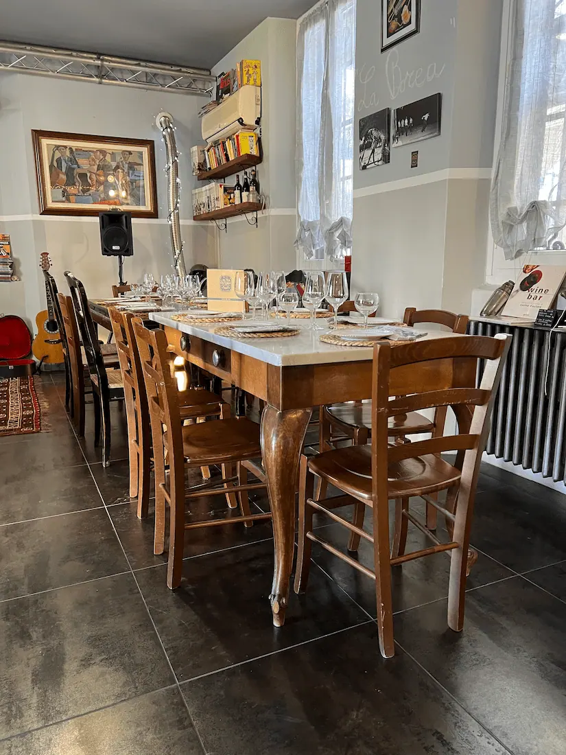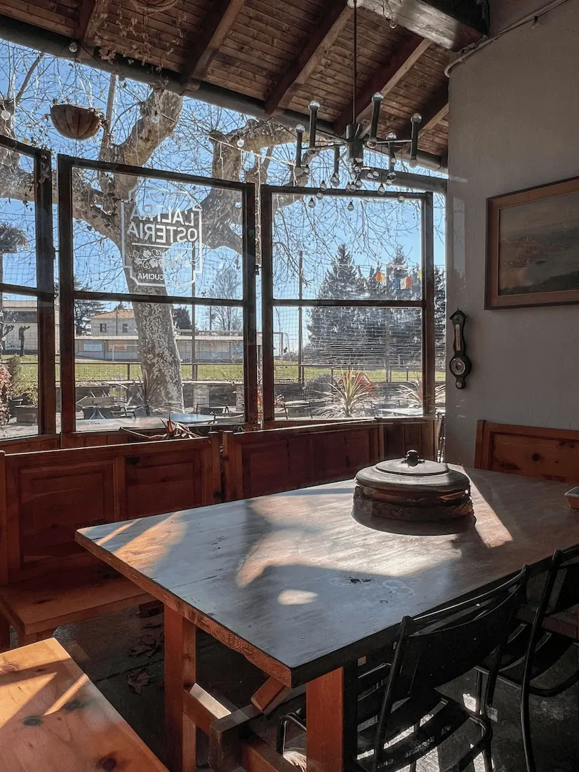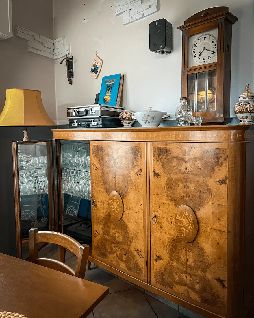 L’arredamento vintage costruisce un’atmosfera calda, elegante, sorprendente per un’osteria.